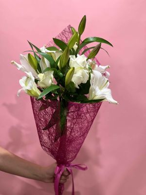 Luxe blooms with a bit of flair! This bouquet pairs the bold beauty of Oriental lilies with the timeless charm of roses—it’s a match made in floral heaven. Choose from classic white, playful pink, or a pretty mix of both, depending on your mood (or theirs!). It’s big on fragrance, full of personality, and guaranteed to make a lasting impression—whether you're celebrating something special or just sending a little wow.